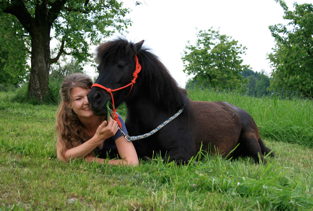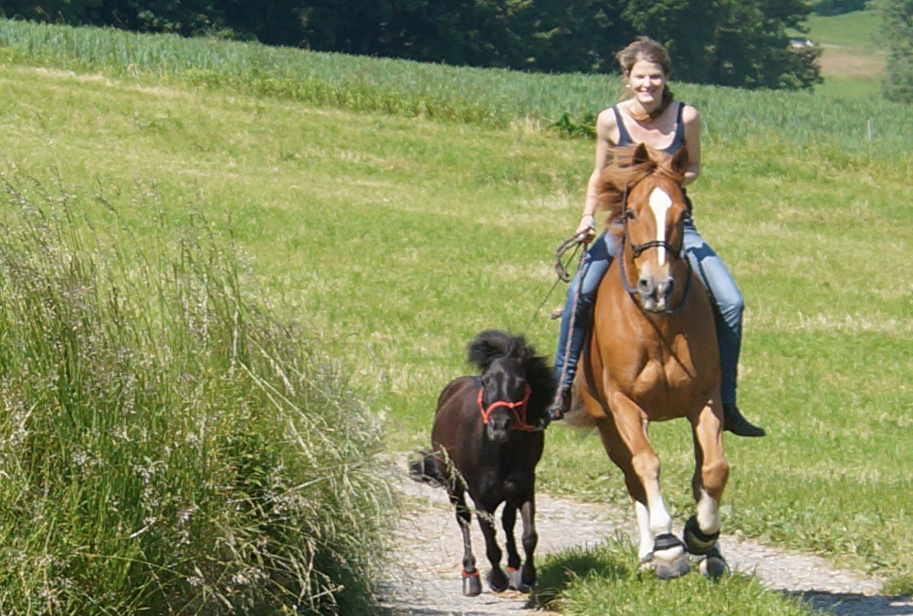 Seit Jahren verbringe ich einen grossen Teil der Freizeit mit meinen eigenen Pferden. Schon lange begleiten mich die beiden Stuten "Evita" (Freiberger) & "Zora" (Shetlandpony). Das 2018 geborene Fohlen aus meiner Stute geniesst im Moment die Jugendzeit auf der Fohlenweide. Eine möglichst artgerechte Haltung und Fütterung ist mir sehr wichtig. Mich faszinieren hauptsächlich die klassische Dressur, Longen- und Freiarbeit, sowie zirzenzische Lektionen.